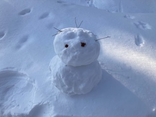 昨日から暖気となり、日中はプラス気温、そのため、雪が固まり易かったからか、雪像を発見しました。